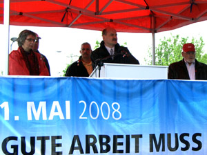 ...Benjamin Grimm (blauer Schirm, Thomas Günther (MdL) und BM Andreas Schulz