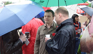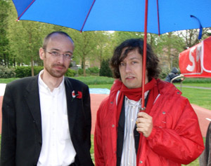 ...Gespräche führen - die Hohen Neuendorfer Genossen Robert Döring und Reik Högner